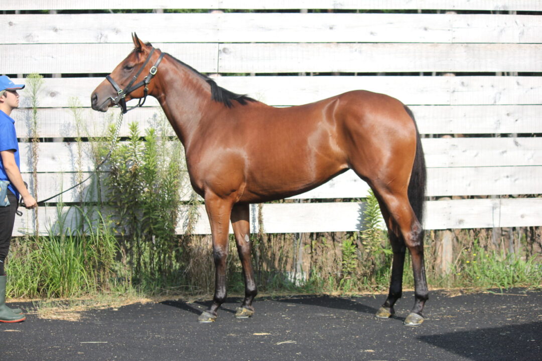 三嶋牧場在厩。前回の報告後にBTC(軽種馬調教育成センター)に出向き、周回トラックコース(600m)で3周のハッキングキャンターを集団で乗られています。問題ない動きで騎乗後も馬体重が減ることもなくカイバもしっかりと食べていました。精神的な強さを持ち合わせているようで、今後はいろいろなコースでスクーリングを重ね、近日中には屋内坂路コース(1000m)に入る予定です。すぐに順応できると見ているので、焦ることなく丁寧に教え込んでいきます。現在の馬体重は471kgです。とのコメント。