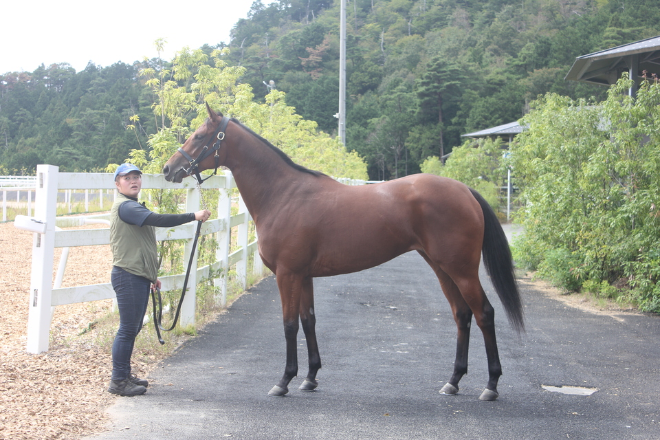 キャニオンファーム在厩。朝晩涼しくなってきましたので調教ペースを上げて現在は坂路コースをハロン13秒台で登坂しています。カイバ食いは相変わらず良く毛艶の良いことから体調面の心配はありません。2歳の成長段階の時期ですので引き続きしっかりと負荷をかけて乗り込んでいきます。四位洋文調教師は定期的に馬体の状態を確認に視察に訪れています。現在の馬体重は483kgです。とのコメント。