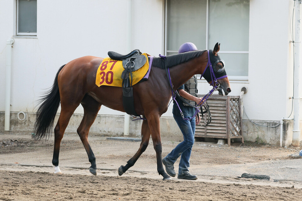ノーザンファーム天栄在厩。昨日9月25日(木)に到着したばかりですので、現在はウォーキングマシンのみの調整です。次走は福島開催を目指して調整する予定です。とのコメント。