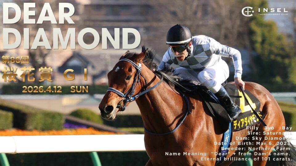 当クラブ所属馬ディアダイヤモンド号が、来週4月12日(日)の桜花賞(GI)に出走を予定しております。クラブ初のGI出走となりますこと、日頃より温かいご声援をお送りいただいている会員の皆様に、心より厚く御礼申し上げます。