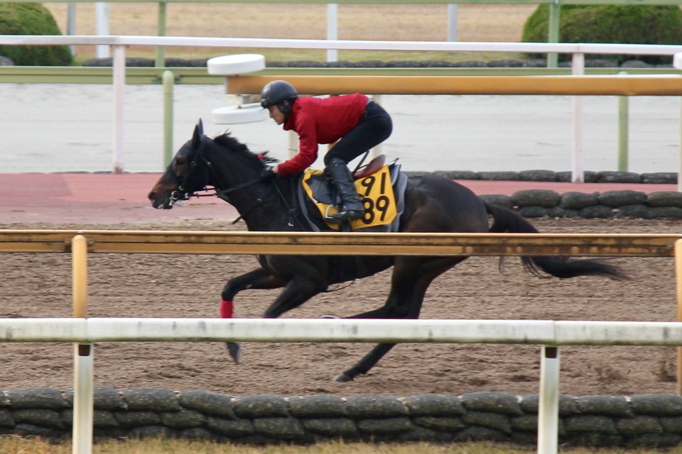 「一時期ペースを落としましたが、それがプラスに働いています。週3日は直線坂路コースで1本乗る日と2本乗る日があり、先日はハロン17秒ペースに戻して、その後は周回コースでのハッキングキャンターでも疲れはみせていませんでした。後肢の踏み込みの良さは変わりませんが、騎乗していて前向きさがありすぎるところがあり、厳冬期は現状のペースを守っていきます。現在の馬体重は442㎏です。」とのコメント。